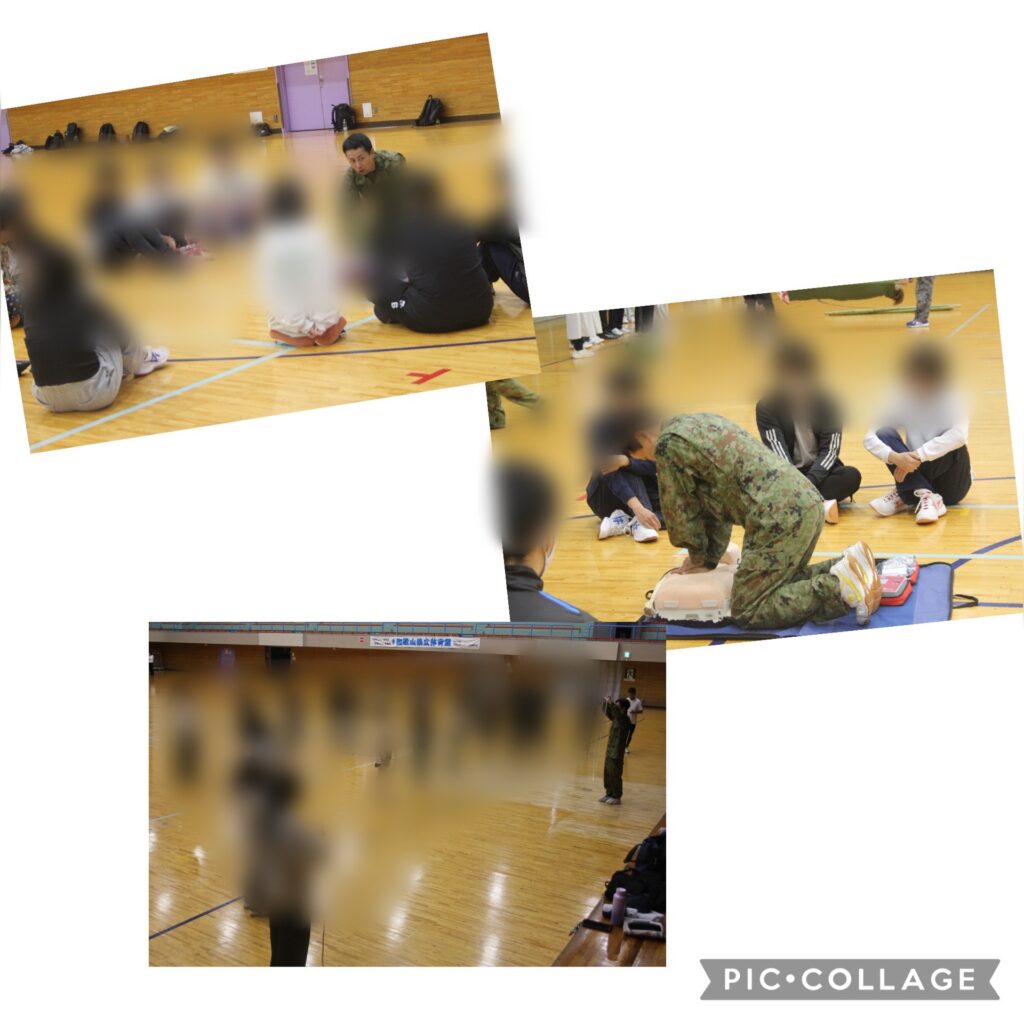 保健と体育のスクーリングを行いました。自衛隊の方々が来てくれ、ロープワークや緊急時の即席担架の作り方を教えてくれました。